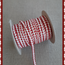 Wit smal (5 mm) bandje met rood steekjesrandje. Prijs is per 50 cm. Minimum afname 0.50 cm.