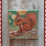 Lief olieverf schilderijtje met eekhoorntje. Afmeting 10x10 cm.